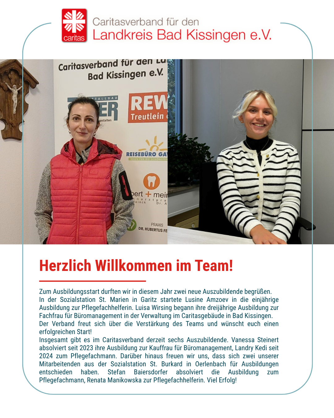 Zum Ausbildungsstart durften wir in diesem Jahr zwei neue Auszubildende begrüßen. In der Sozialstation St. Marien startete Lusine Amzoev in die einjährige Ausbildung zur Pflegefachhelferin. Luisa Wirsing begann ihre dreijährige [...]